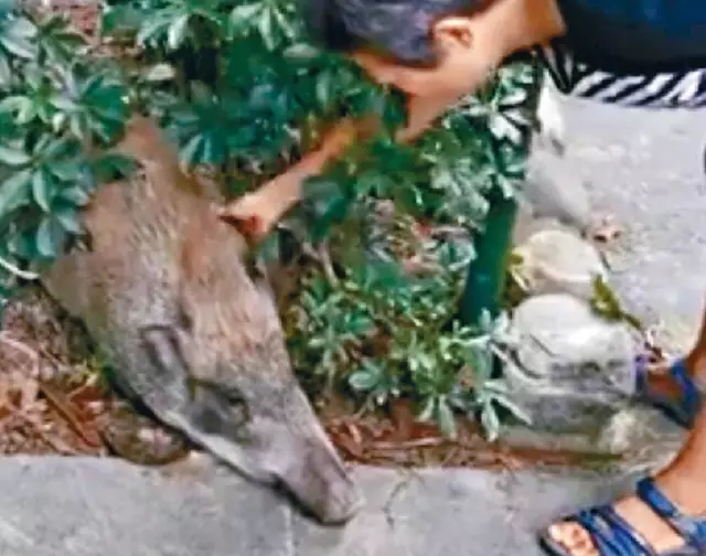 韋然經常一早由鰂魚涌行上畢架山,俾佢見到有嬸嬸同野豬家族老友鬼鬼,用把傘幫大肥豬掃背,大肥豬仲舒服到攤喺地上,當佢起身跟住嬸嬸,嬸嬸就話︰「畀咗條粟米你食啦,仲跟住我。」大野豬好乖,完全無攻擊性。