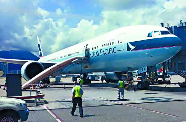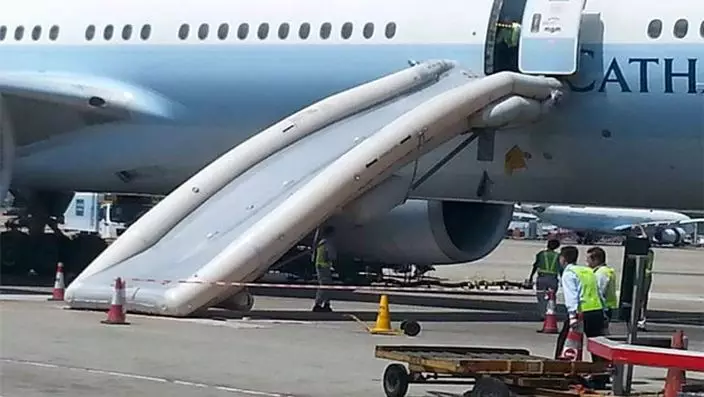 國泰航空公司一班原定昨中午飛往美國芝加哥、編號CX806的波音777-300ER型號客機,昨晨十時許,航機由清潔服務供應商進行清潔時,疑有員工「多手」,誤打開右邊機身第二道機門,引致緊急逃生充氣滑梯彈出。