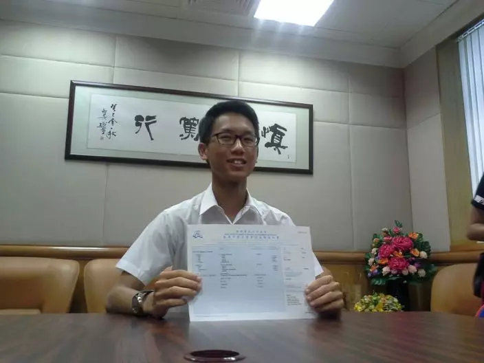 皇仁書院另一名7科5**狀元張滌豐則表示,成績比預期好,他說取得佳績主要靠不斷溫習,亦有補習,同時參與課外活動。