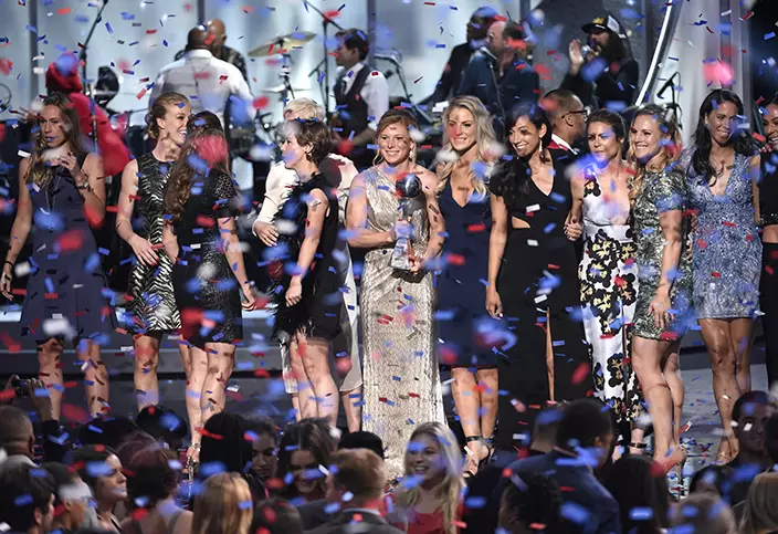 而最佳女運動員獎歸於女拳王朗達露絲(Ronda Rousey)。在世界盃封后的美國女足就成為最佳隊伍。