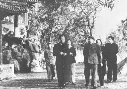 彭德懷和劉少奇等人在中南海散步(資料圖)