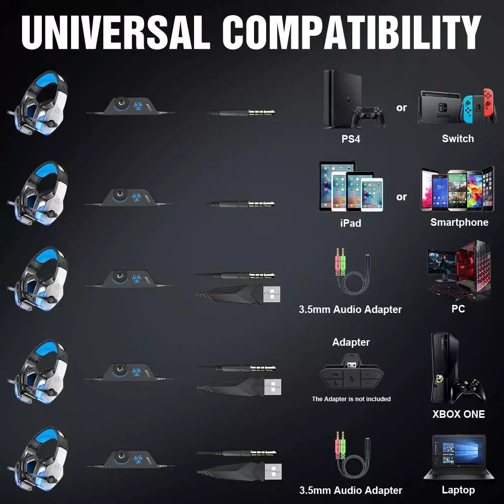 BENGOO V-4 遊戲耳機支援PS4、iMac及平板電腦等主流遊戲平台。