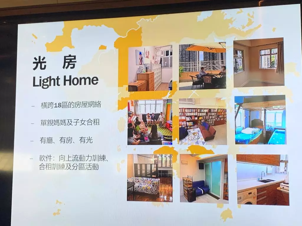 光屋的好處就在於,打造很好的鄰里關係,家長可以放心讓孩子在活動室玩耍,甚至在社區的園圃玩,媽媽就可以出去工作,這樣就能夠很快脫離貧困。有個案本來是租4000蚊的光屋,後來變成可以租9000蚊的豪景花園單位脫貧。
