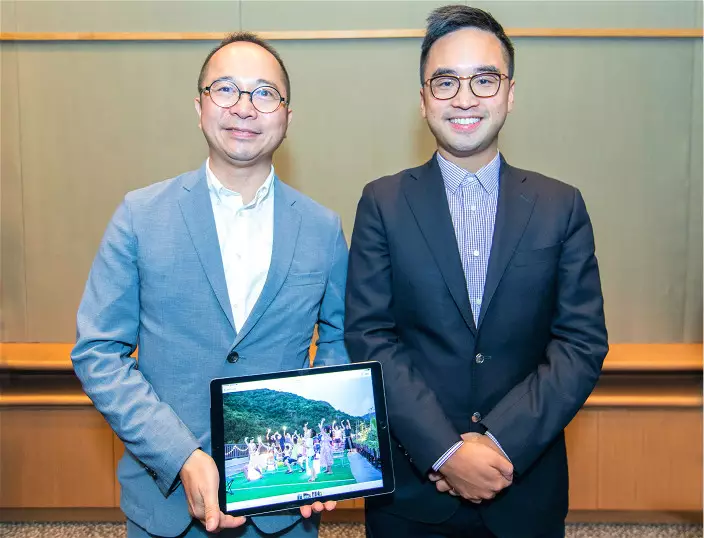新世界向「要有光」以1元象徵式租金,撥出鄰近天水圍港鐵站的3幅約3萬呎地皮興建「光村」,以嶄新模式協助「短貧戶」脫貧。圖為新世界發展執行副主席兼行政總裁鄭志剛(右)及「要有光」創辦人兼行政總裁余偉業(左)。