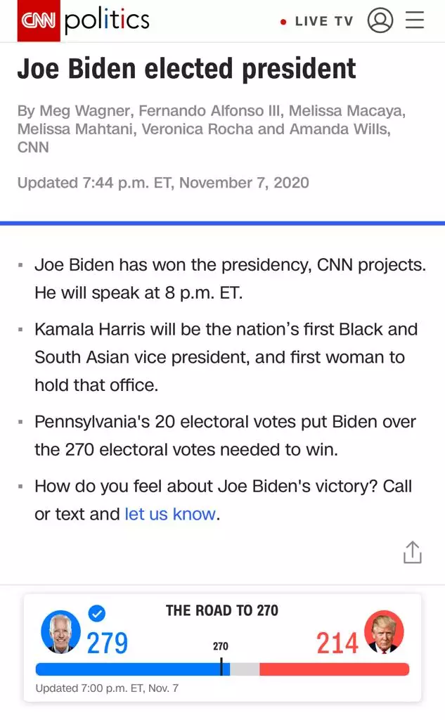 在霍士新聞稱拜登拿下搖擺州亞利桑那州之後,美聯社很快就跟隨霍士的消息,預告亞利桑那州的結果,不過該州的選情仍很接近,其他一些媒體則堅稱,勝負難分。