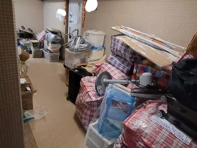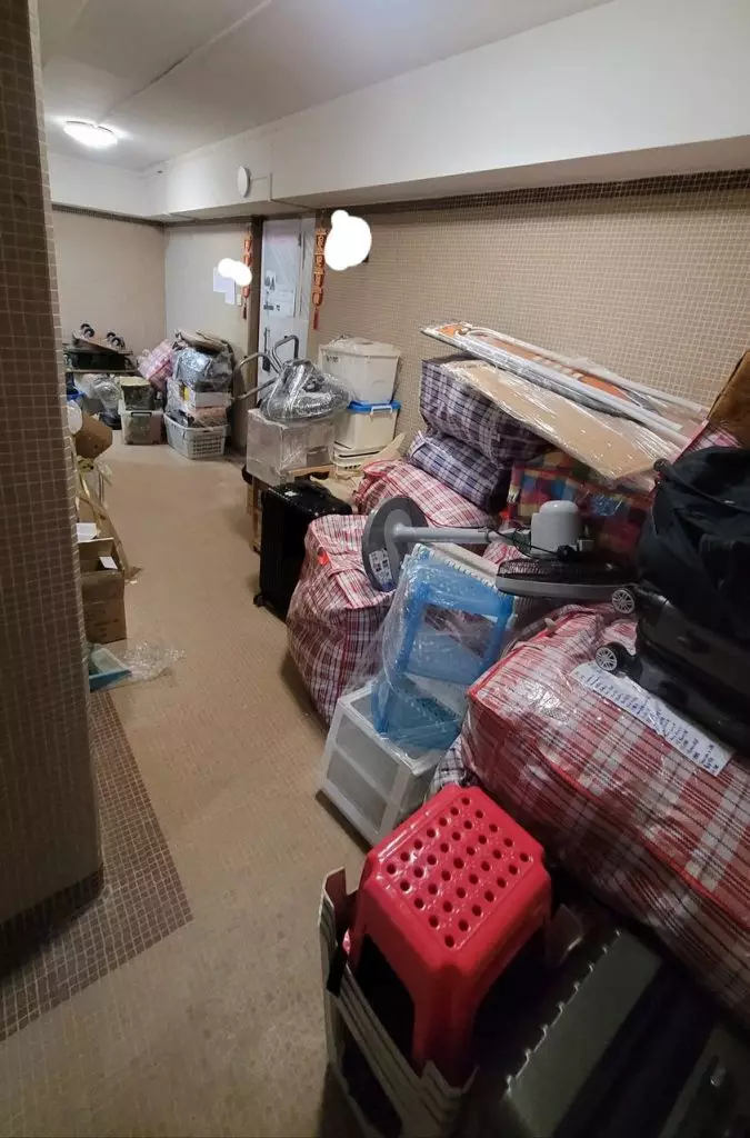 網民在「Mei Foo美孚」Facebook群組分享相片,「屋企裝修,煩緊雜物唔知放邊好?唔緊要,放喺走廊咪得囉」。從相片可見,走廊堆滿家私和雜物,部分堆至門口高度,大部分都用塑膠包好及裝入紅白藍膠袋,似是準備搬走。
