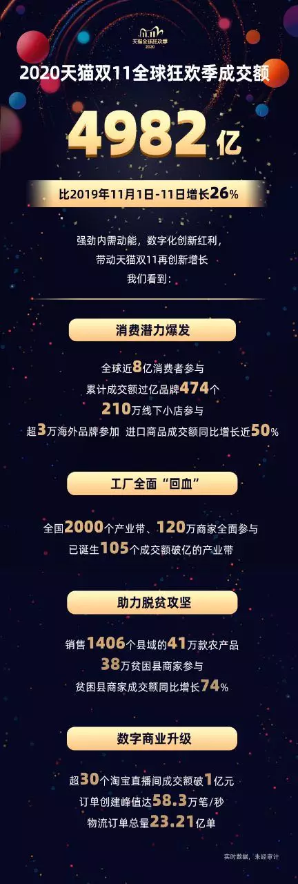 2020年天貓「雙11」,從11月1日到11月11日的總成交額(GMV)達到4982億元。
