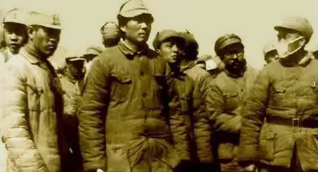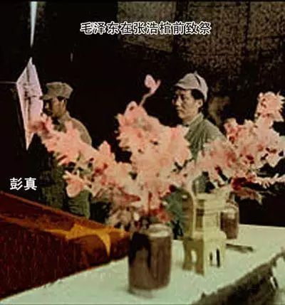 江青披著一個現在看來一點都不好看的頭巾,坐在最中央看演出。陪她一起看演出的有右一華國鋒,葉劍英,和她的四人幫成員中的另一重要人物姚文元。