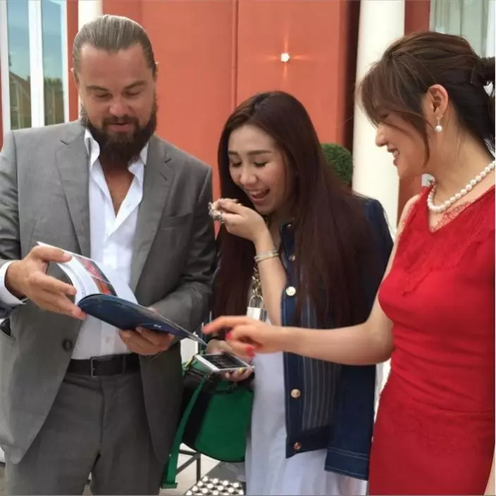 超盈早一日下午先跟里安納度私人午宴,表情冧到不得了,印尼華人藝術收藏家余德耀還將這幕拍上上載IG。