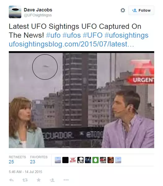 報道稱,今次發現的UFO非常強大,又指地球是「外星人旅遊」的熱門地點,外星人至今在地球上留下了113個足跡,及在月球上製造了231個建築物,足以解釋UFO為何在地球上留下麥田圓圈,及經常出現在直播畫面上。