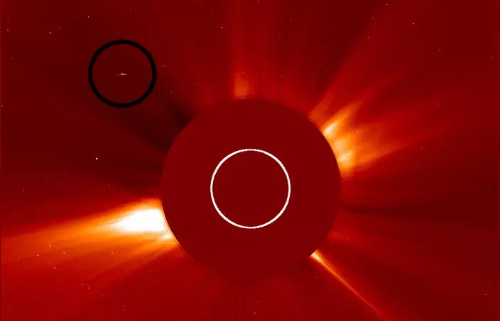黑圈所示是被指發現的超巨型UFO。圖:NASA