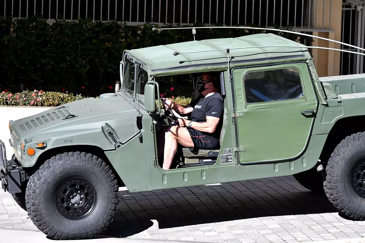 美國加州前州長阿諾·舒華辛力加(Arnold Schwarzenegger)近日現身聖莫尼卡街頭。他戴墨鏡穿黑T身材健碩,開越野戰車悍馬(Hummer)H1霸氣出街超有型。