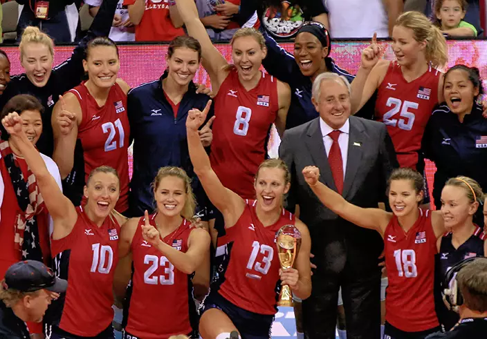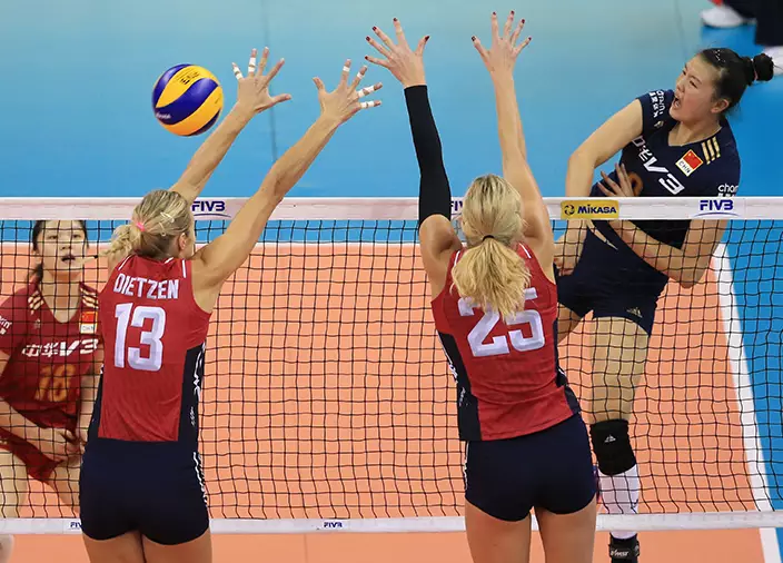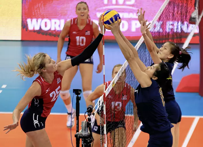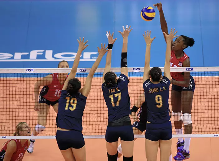 藍衫的國家隊在進攻和攔網輸給美國,連敗兩局19:25、18:25落敗。美國5連勝奪冠,俄羅斯得9分獲亞軍,同樣9分的巴西因局分不及而屈居季軍,中國2勝3負得7分名列第四名,意大利及日本分獲第五、六名。