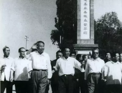 1978年9月3日,華國鋒(左3)、紀登奎(左2)一行視察新疆農八師一四五團