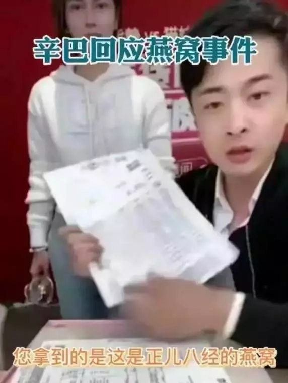 辛巴團隊日前在直播上售賣茗摯品牌「小金碗碗裝燕窩冰糖即食燕窩」,但卻被買家怒斥產品只是糖水。辛巴其後與主播「時大漂亮」在直播間展示檢測報告,指產品沒有問題,同時揚言要對誹謗自己的人採取法律行動。