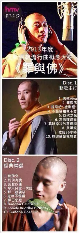 最近紅爆facebook的「2013佛教流行曲概念大碟」《罪與佛》在網上瘋傳。大碟封面係一個和尚錄音,但由於啲歌名太搞鬼,仲有埋HMV的價錢牌,當然呃唔到眉精眼企的一眾網民。