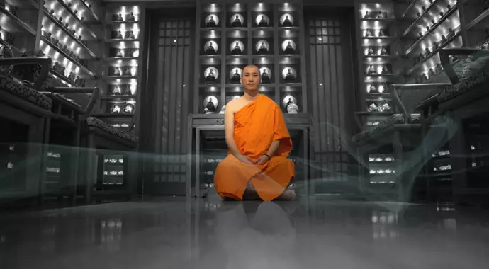 原來呢位靚仔僧人真有其人,法名釋道心,係廬山東林寺剃度出家。佢09年上載左張戴黑超藍牙耳機,CHOK爆的相擺上自己個網,起題「傳說中的佛門小謝霆鋒」。之後就被內地網友瘋狂轉載。
