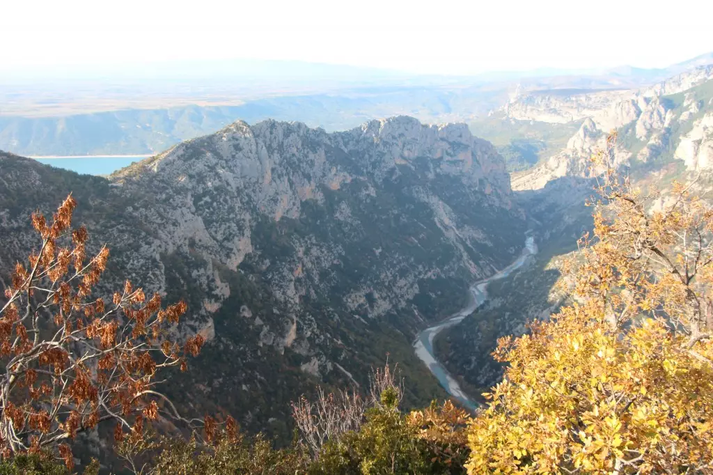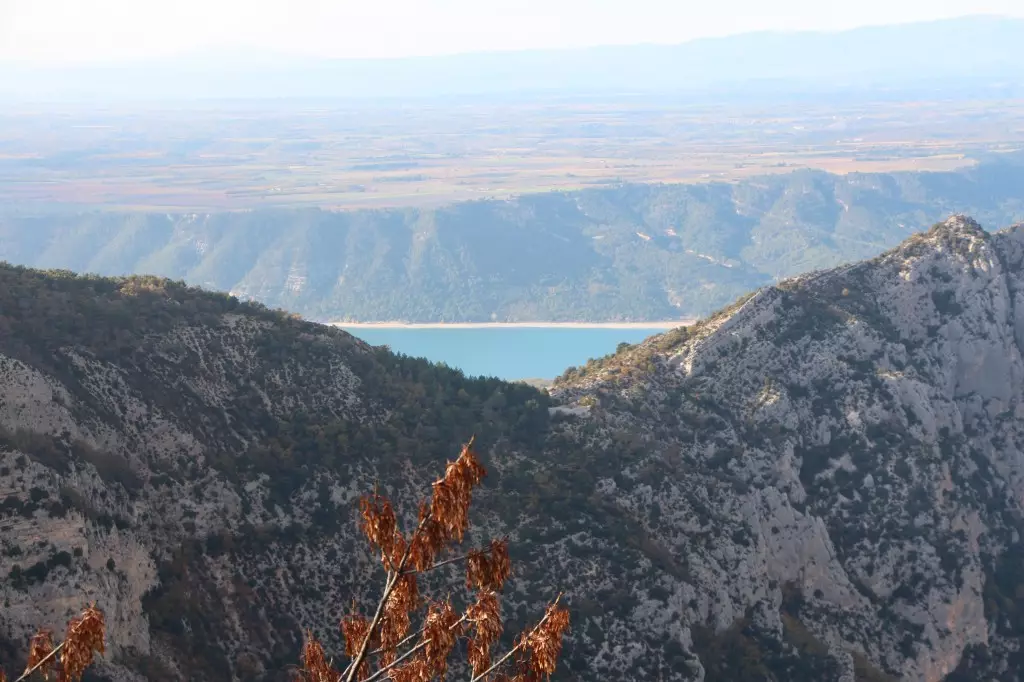 沿公路下望,一個湖泊隱約在遠處出現,仿如穩坐在峭如刀鋒的山脊上,這就是聖十字湖 — Lac de Sainte-Croix。