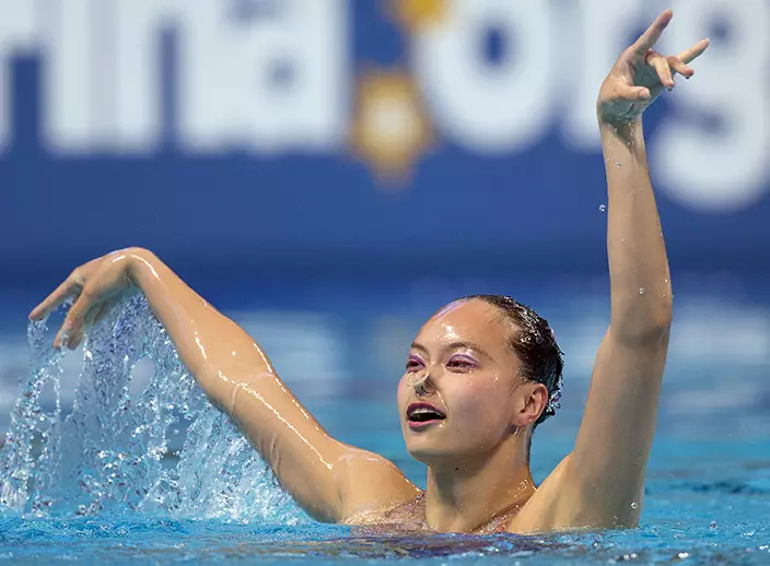 黃雪辰奪得韻律泳單人自由自選銀牌。(AP圖片)