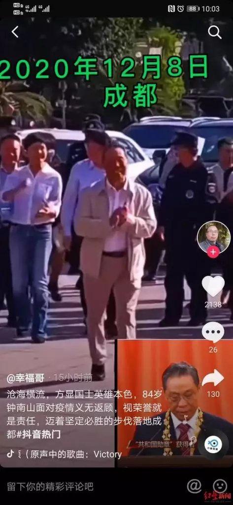 從昨天開始,抖音上一些網民發佈小視頻,均稱鍾南山來成都抗疫,獲得很高關注。不少網友表示感謝的同時,也有不少網友提出質疑。紅星新聞記者從權威渠道核實,「鍾南山來成都」為假消息,目前他並沒有來成都。