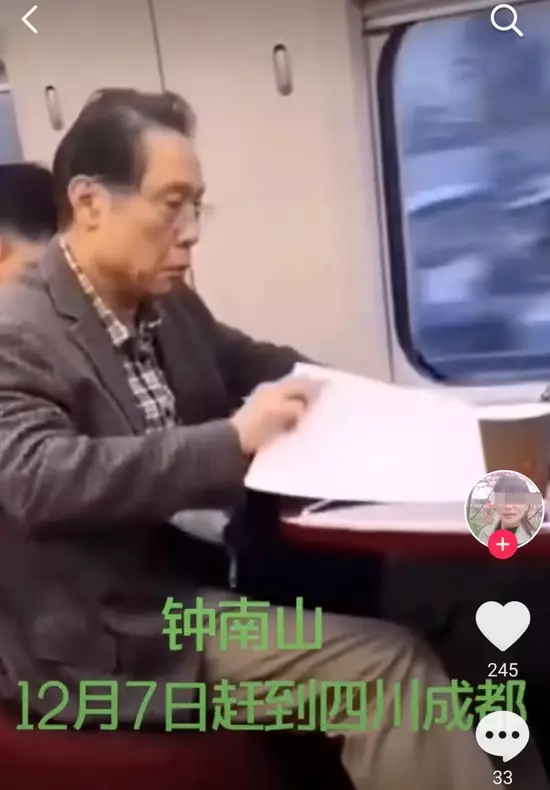鍾南山院士來到成都?從昨天開始,抖音上一些網民發佈小視頻,均稱鍾南山來成都抗疫,不過細節各有出入。一位網名發佈的視頻中,疑似鍾南山院士的男子在火車上,字幕稱「12月7日鍾南山趕到四川成都」。另外兩名網友發佈的視頻中,疑似鍾南山院士的男子在室外與他人鼓掌互動,字幕稱「2020年12月8日 成都」。