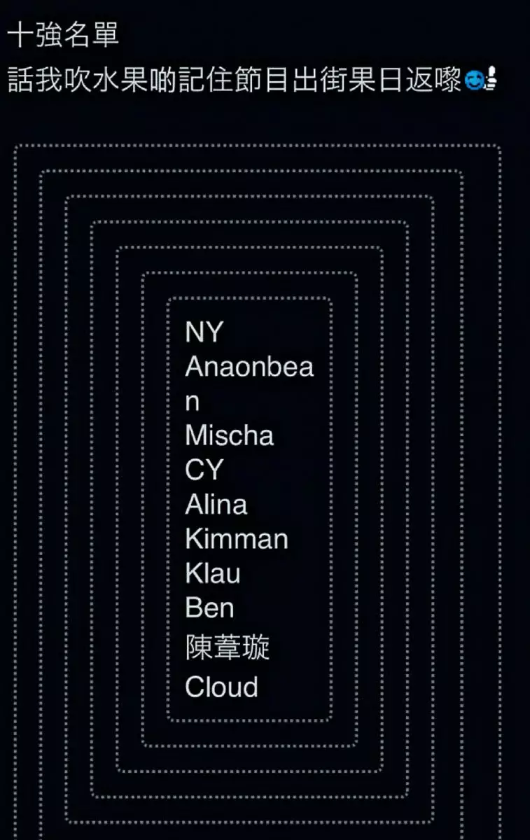 有網民在討論區以加密形式大爆《全民造星III》十強名單。