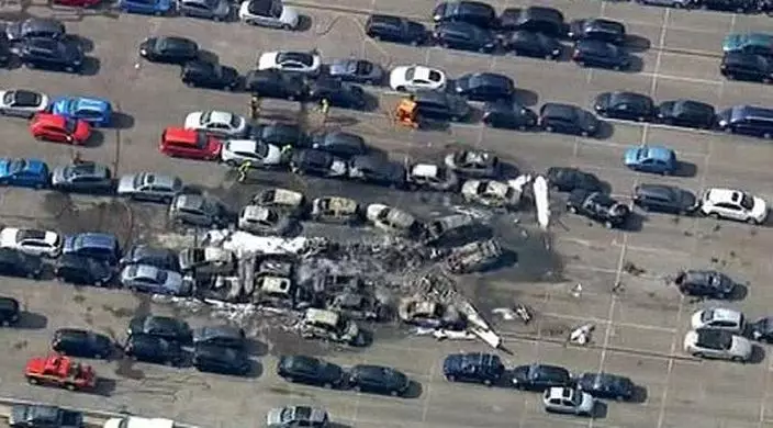 停車場內約有20架汽車全毀。網上圖片