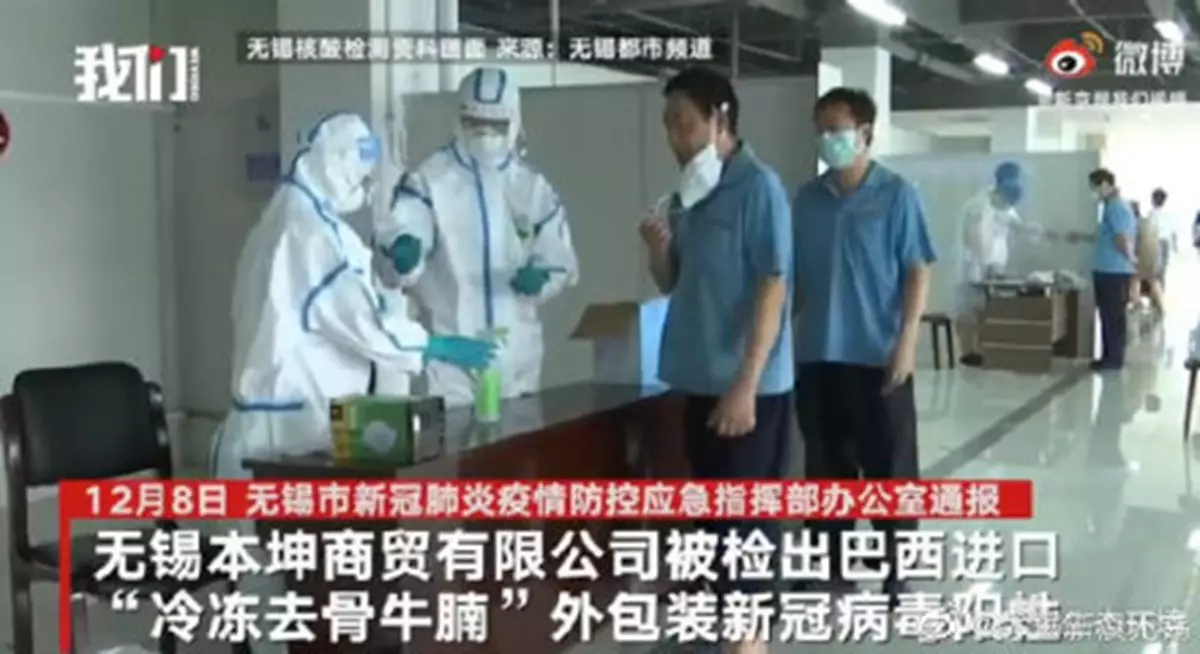 日前,無錫市在對無錫本坤商貿有限公司庫存的進口冷鏈食品檢查過程中,檢出某批次巴西進口「冷凍去骨牛腩」外包裝新冠病毒核酸陽性。當局立即啟動應急響應,對涉事單位開展全面調查。
