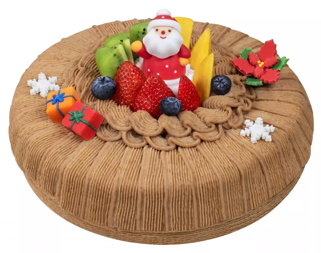 水果夾層蛋糕是不少人的心頭好,繽紛雜果聖誕以色彩繽紛的水果迎接白色聖誕,雪白的忌廉圍繞聖誕老人公仔和清甜的雜果,入口先吃到鮮果的清甜,再來是夾層蛋糕的鬆軟和薄脆夾心的可口,脆軟交織的口感令人一試難忘。