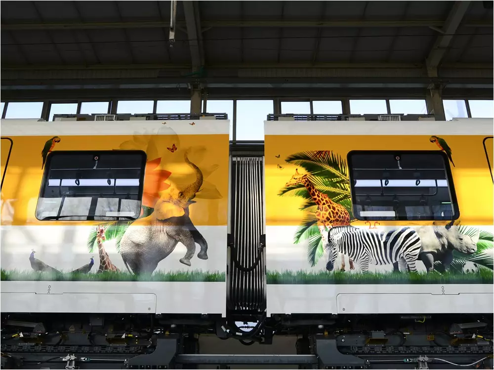 車頭酷似海豚的奇幼列車,最高時速120公里,主要服務長隆主題公園旅旅景區,一期綫路全長8公里。列車每節車的最大懸浮重量達到40噸,最大載客量500人。