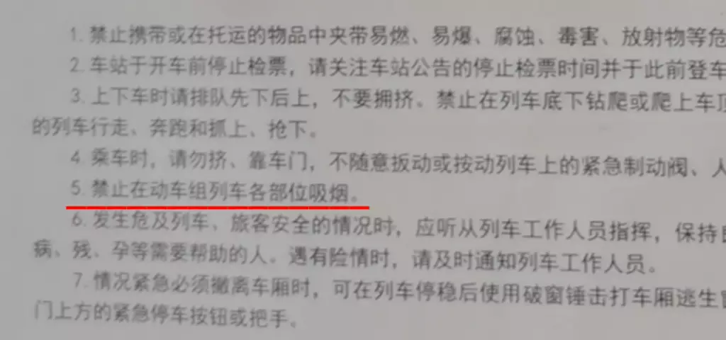 在全車禁煙的K1301次普速列車的《鐵路旅客乘車安全須知》中註明,「禁止在動車組列車各部位吸煙」。顯然,不屬於動車組的K1301次列車,採用了和動車組一致的規定。這是否意味著所有「綠皮車」都可以直接參照動車組的禁煙規定?