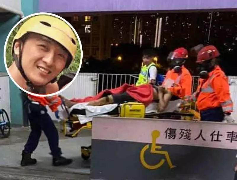 救護隊目鄭冠明(小圖)若非遇路阻料可提早到達停車場。