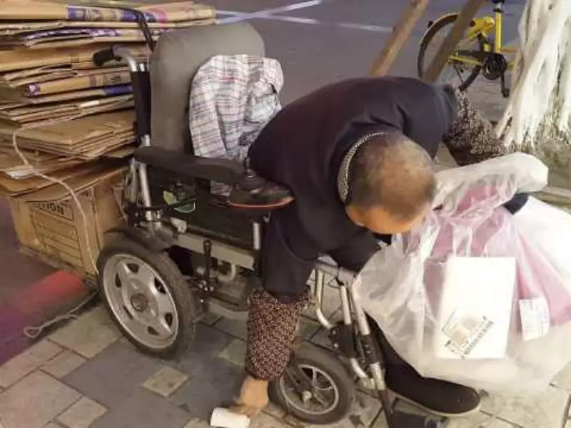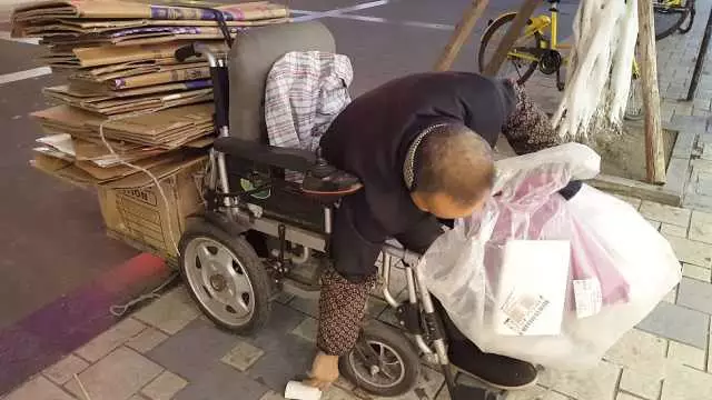 輪椅伯伯負責整理紙皮,婆婆負責執紙皮。銀杏館FB