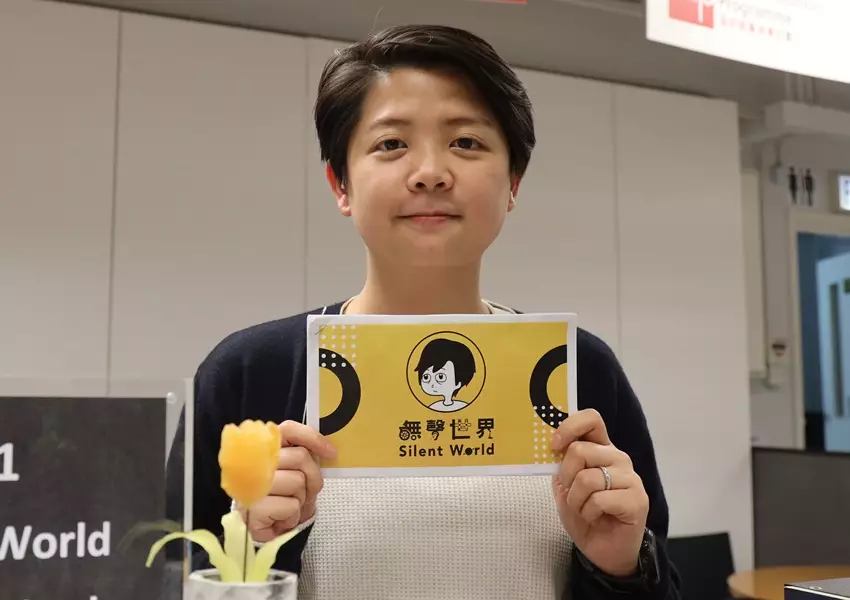 「我不知道人生應該要怎麼活下去,因我只活在自己無聲的世界……我只知道我喜歡畫圖畫。」自小活在無聲世界的「80後」女子,因為嚴重聽障難以與人溝通,求學期間屢遭同學排擠,亦難以追上學習進度,一度認為活着沒意義,幸接觸漫畫後,發現可藉着畫筆表達內心感受,終於步出陰霾,不久通過網上平台展示畫作,分享聽障人士生活點滴和心聲,從中結識不少知心網友,近期又利用繪畫專長創立平面設計公司,寄望未來協助更多殘疾人士就業,一起畫出人生彩虹。