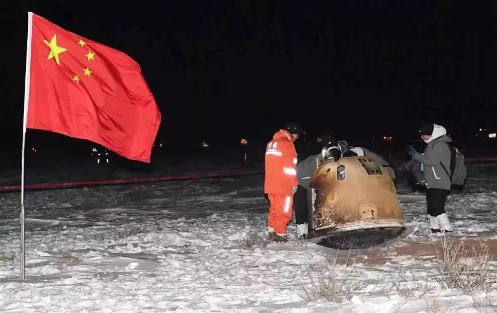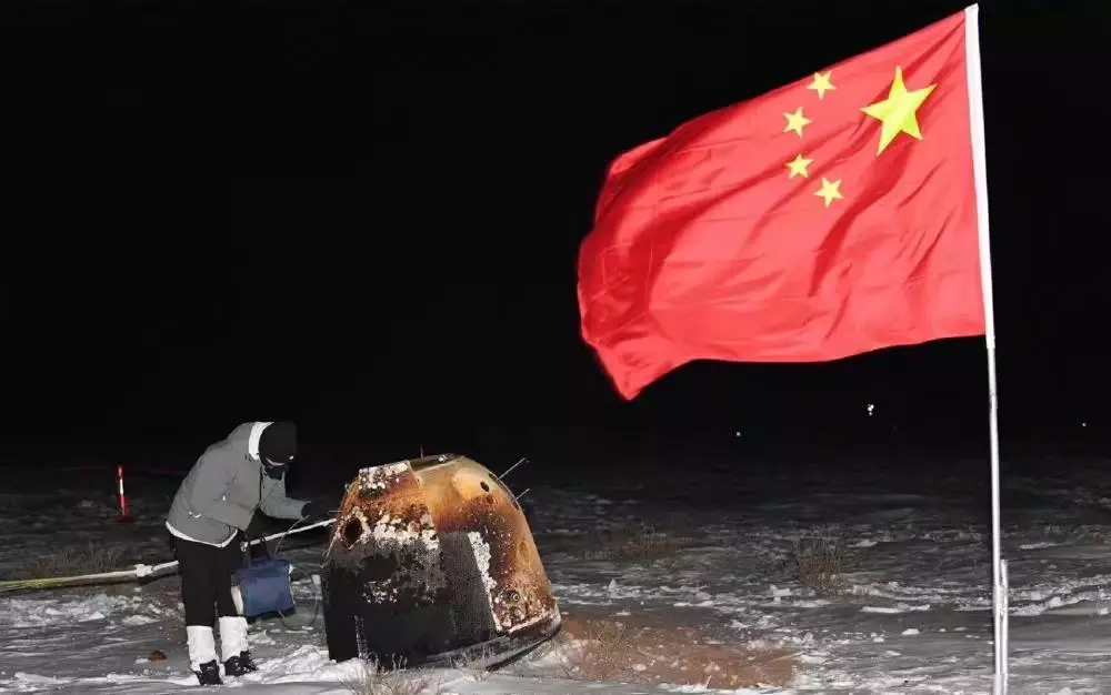 嫦娥五號經過23天的太空之旅後,返回器攜帶2千克月壤樣品成功在內蒙古中部四子王旗著陸場著陸,標誌著我國首次月球採樣返回任務圓滿完成!