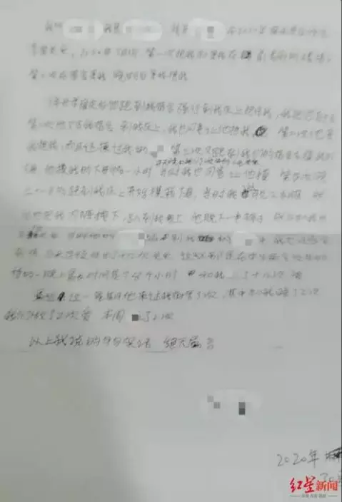 一份約400字的檢討書顯示,其中有多處性行為的直觀描述,內容有多處塗改痕迹。劉先生說,其間妹妹曾向校長表示自己沒有「做過」,不會寫檢討書,“妹妹告訴我,校長打她,之後他說一句讓我妹妹寫一句。”