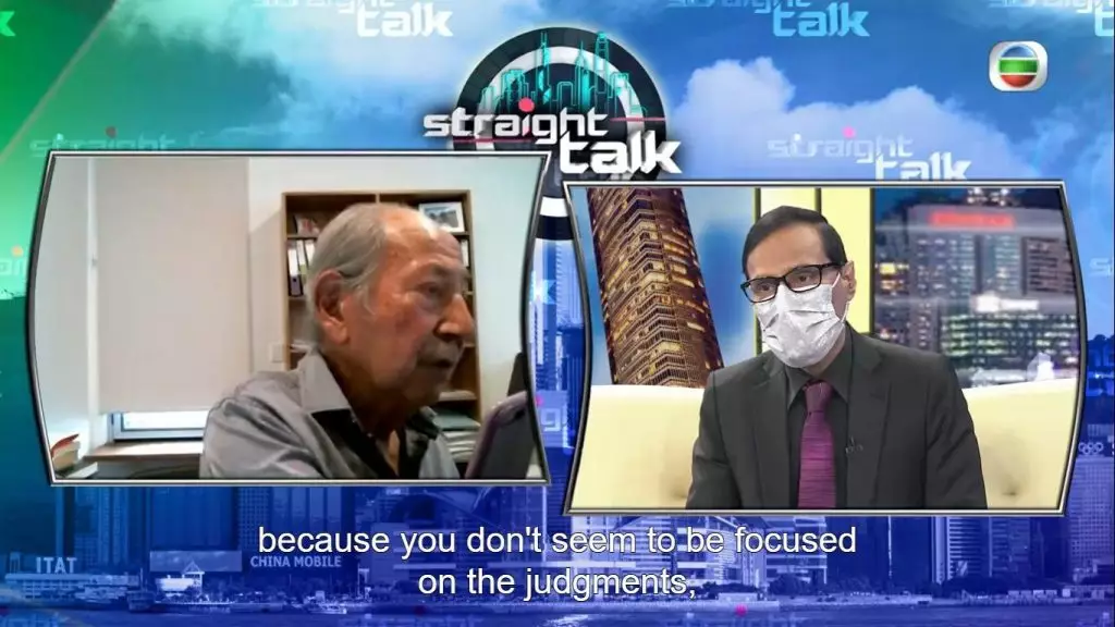 終審法院前常任法官烈顯倫昨晚在明珠台《清心直說》節目接受主持人褚簡寧(Chugani)訪問。