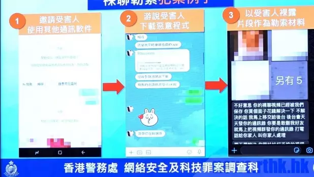 其中裸聊勒索案,警方發現有新犯案手法,騙徒會先游說受害人下載惡意程式,從而偷取通訊錄資料,之後就威脅會將裸聊的片段傳送予受害人親友勒索金錢。