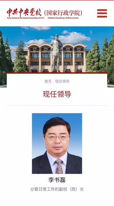 中央黨校官網顯示,李書磊已經擔任中央黨校分管日常工作的副校長。中央黨校官網截圖