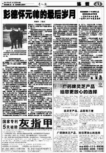 幾乎和這同時,甘肅省武山縣一位貧農老大娘在臨死前,告訴她的兒子康明前:「我死後,你記得把我棉衣里的東西取出來,保存好!」康明前在母親死後拆開了她的棉衣,原來有一張彭老總的照片縫在她貼心口的地方。後來,康明前把這張照片寄給了彭總的夫人浦安修。
