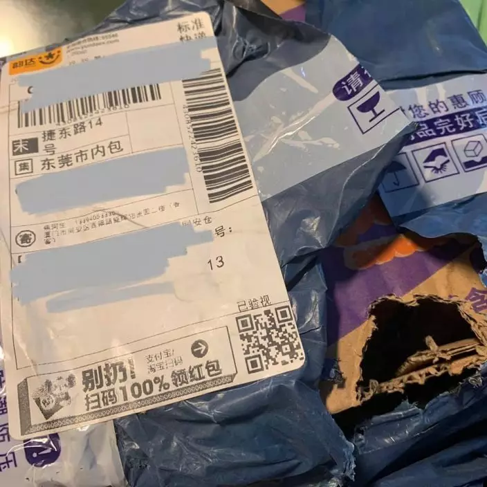 網民多次發現包裹破爛,懷疑是被老鼠咬爛。Trista Shum圖片