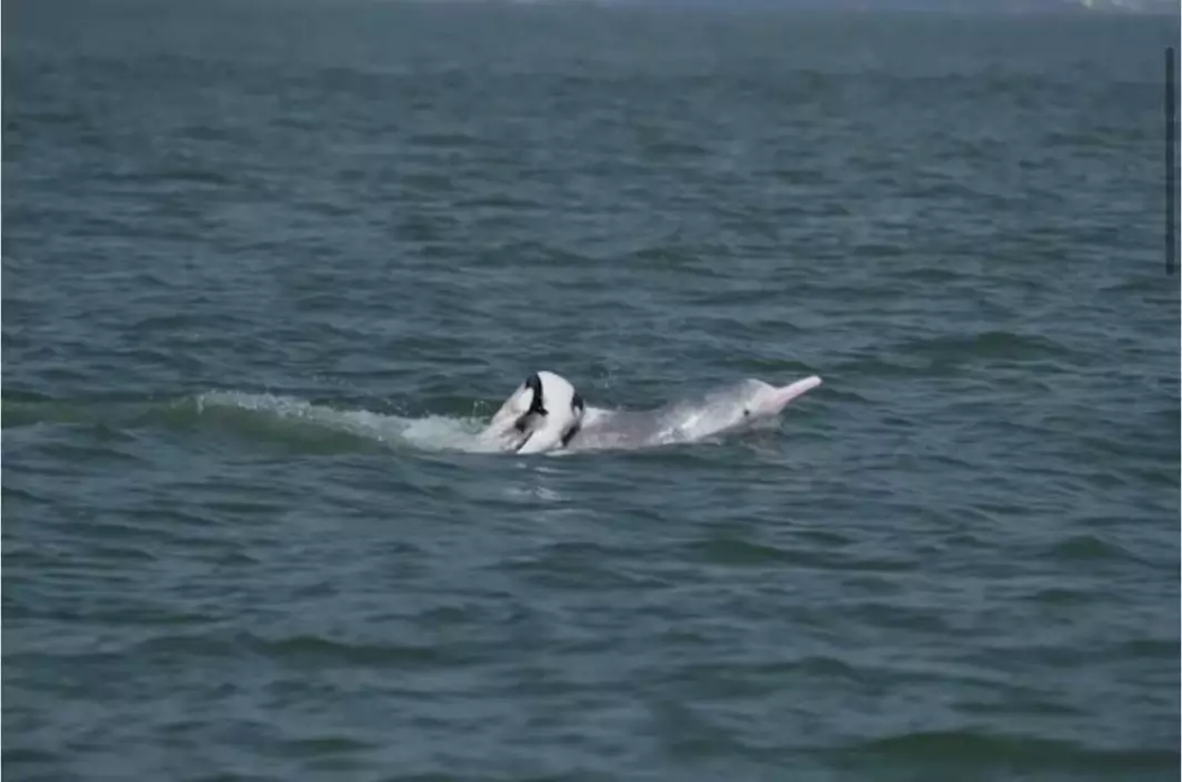據廣東省林業局網站介紹,中華白海豚是國家一級保護動物,俗稱白忌、白牛、白海豚,被粵、閩、港、台、澳等地漁民譽為「媽祖魚」、「海上大熊貓」。體色隨年齡變化較大,幼體呈灰色,成體全身白色,頭部、身體兩側、鰭肢及尾鰭散佈灰色斑點。通常在劇烈運動後,因皮下血管充血而呈現粉紅色。
