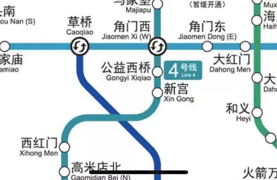 如「蒲黃榆」寫為「Puhuangyu」,「宣武門」寫為「Xuanwu Men」。以名勝古迹、紀念地等命名,或有約定俗成、長期沿用且中外普遍接受的英文名稱的站名,繼續使用英文譯寫。如「頤和園」譯為「Summer Palace」,「國家圖書館」譯為「National Library」。站名以「東、西、南、北」等方位詞結尾的,方位信息統一用英文縮寫標註解釋。如「角門西」寫為「Jiaomen Xi (W)」,「北海北」寫為「Beihai Bei (N)」。