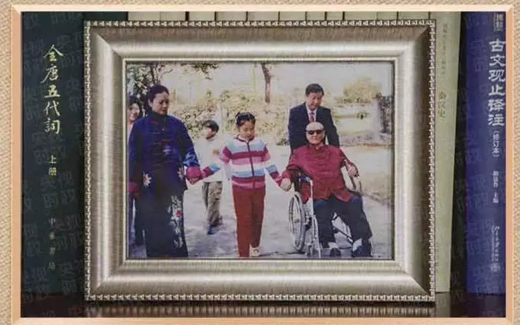 自2013年習近平第一次發表新年賀詞以來,這張照片就一直出現在他的書架上。習近平推著年事已高的父親,和妻子、女兒一起散步。