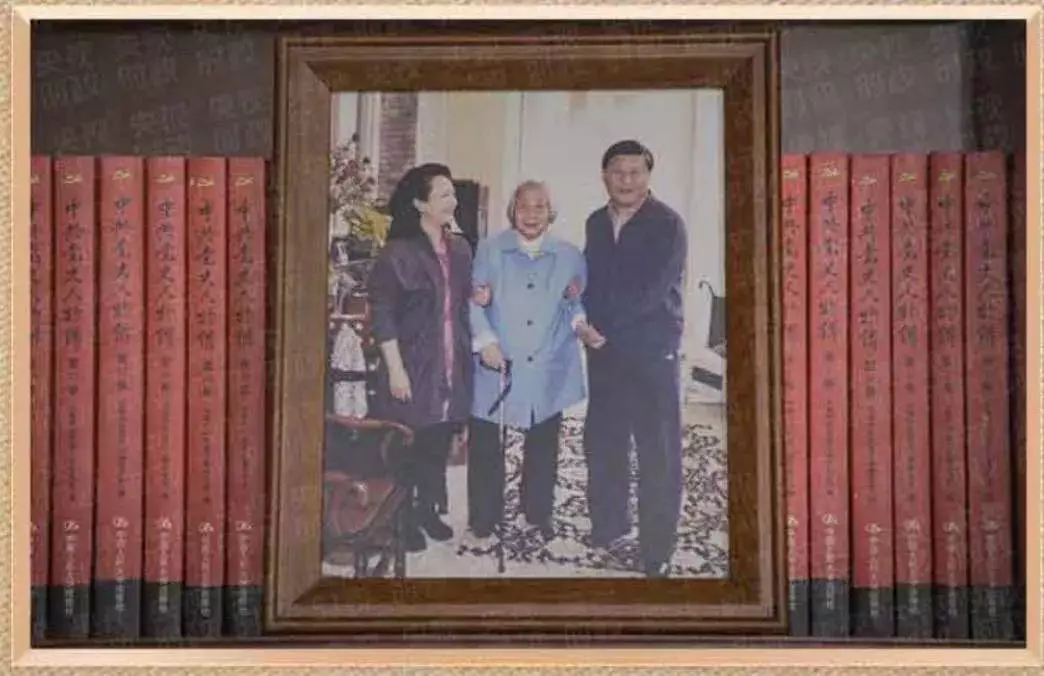 這張照片今年第一次出現在習近平的書架上。照片中,習近平和夫人彭麗媛攙扶著母親齊心。