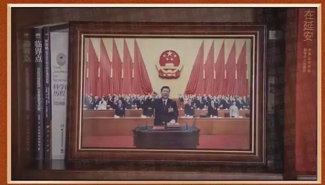場景:這張照片從2019年新年賀詞開始,一直出現在習近平的書架上。在十三屆全國人大一次會議上,習近平主席面對近3000名全國人大代表,面對十三億多人民,莊嚴進行憲法宣誓。這是新中國成立以來,我國最高領導人首次進行憲法宣誓。