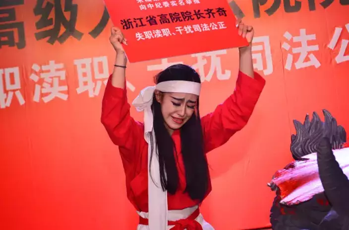 中國文化旅遊龍頭企業浙江「宋城集團」昨天別出心裁,在總部門前排演舞台劇,舉報浙江高級法院院長齊奇「失職瀆職、干擾司法公正」,現場「漫天飛雪」,百名「竇娥」跪地悲痛鳴冤,立即被各大網站轉發和報道。該集團同時在官網、微博及微信上發布舉報消息,但沒有披露舉報的具體案件。浙江省高院回應稱「正核實相關情況」,中紀委表示會按程序處理。