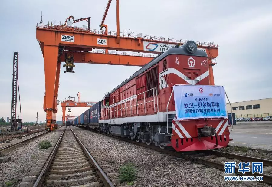 2020年5月9日,開往塞爾維亞貝爾格萊德的中歐班列(武漢)準備從吳家山站駛出。新華社記者 肖藝九 攝