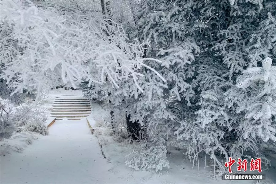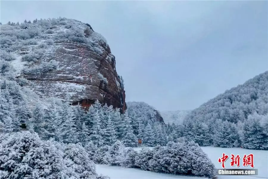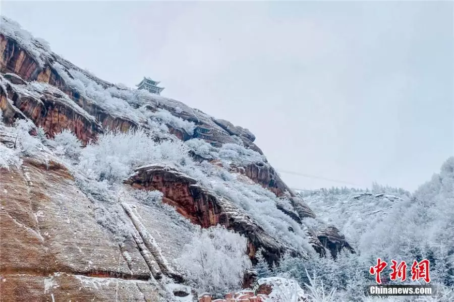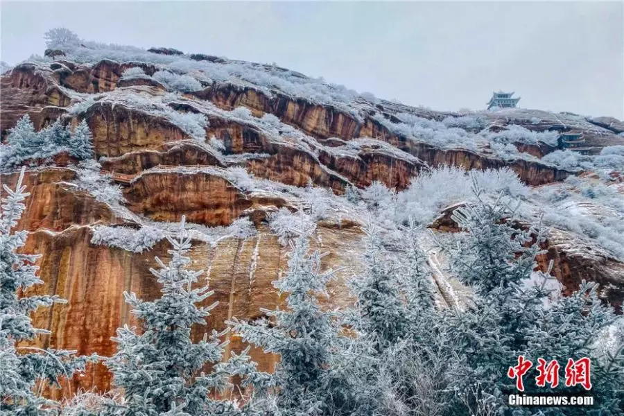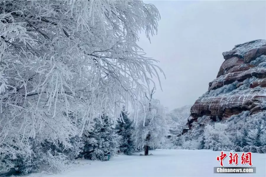 寧夏固原市西吉縣火石寨國家地質(森林)公園出現霧凇冰凌美不勝收。
