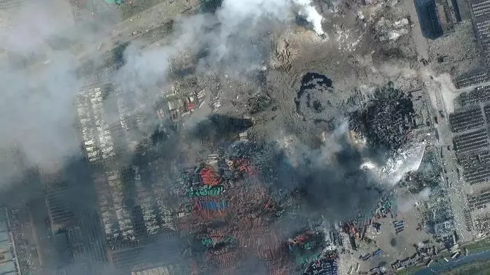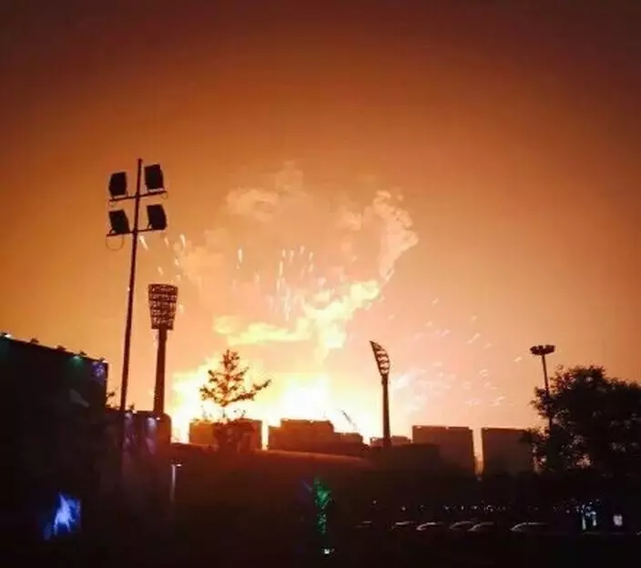 另據消防部門查得,爆炸倉庫存放硝酸鉀、硝酸鈉等硝酸鹽物質,爆炸物主要為硝酸類化學品。這些固體氧化劑遇熱、碰撞都容易爆炸。事故是先爆炸後起火的,現場已被炸成一個大坑!